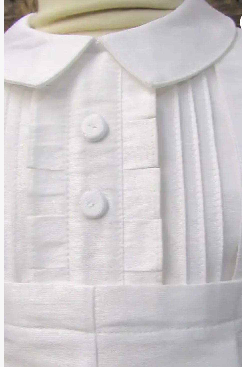 Elegant white romper with rows of pintuck details. 100% Poly