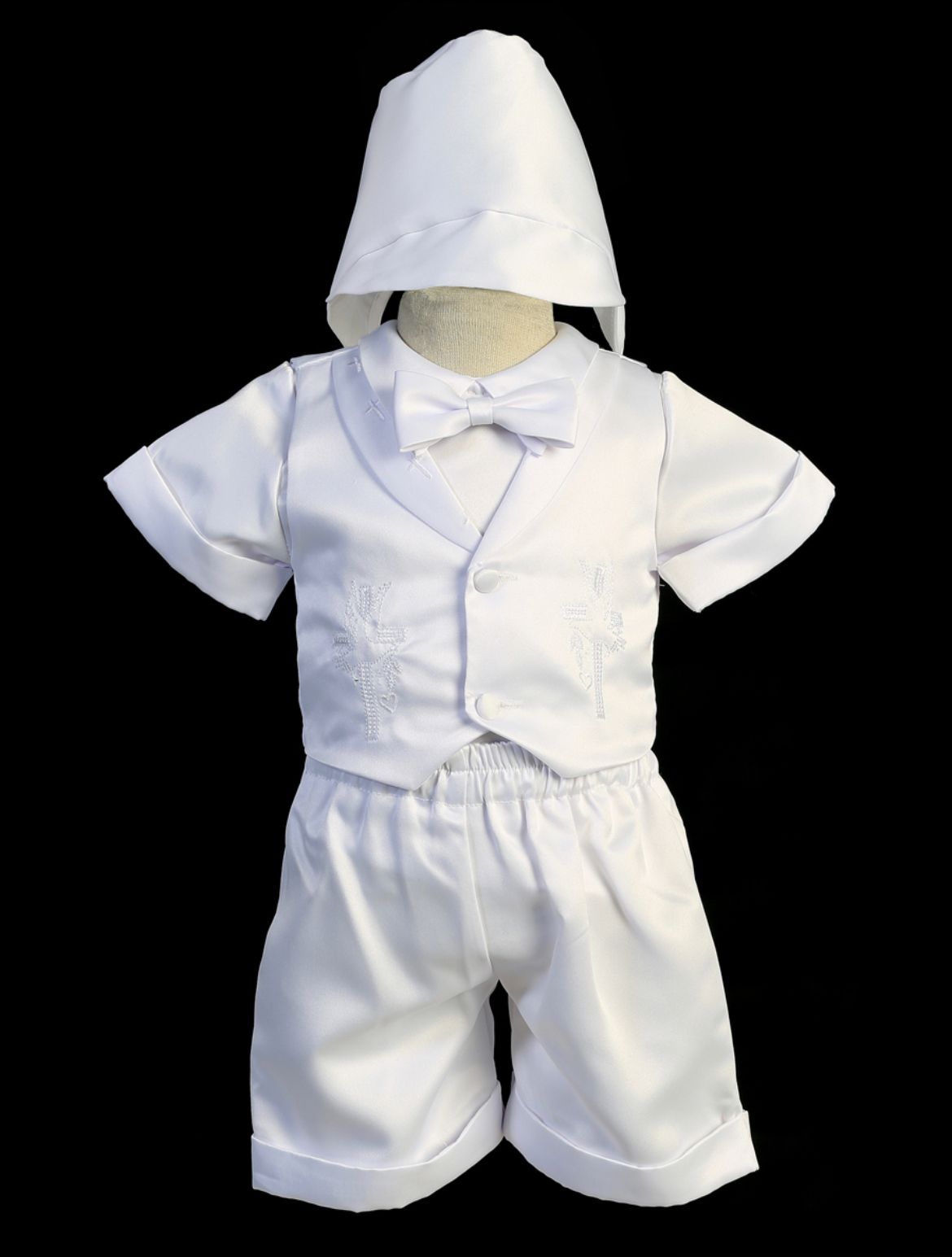 Baptism suit for baby boy available in white color.