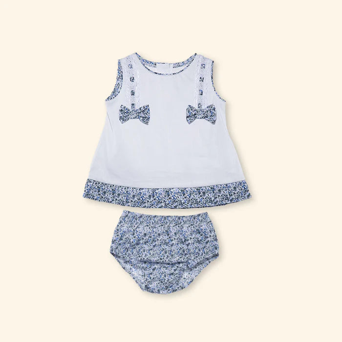This two pieces set is so nice!!! the top is white pique and some details in flowers with panty matching.